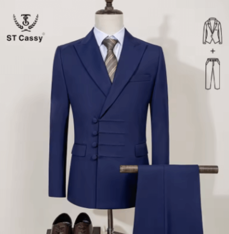 ST Cassy Terno masculino elegante para casamento, slim fit, trespassado, vários botões, casual, masculino de negócios, conjunto de 2 peças
